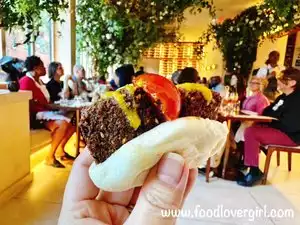 We went to Frena for a Tasting Collective event, so we got to taste 5-course dinner especially curated for us. The interior was quite modern, with lots of greens everywhere, making the space looks like an oasis in the middle of concrete jungle. Cozy and welcoming. We decided to get a cocktail to start off. We chose Levant Dew which is actually “boozelss” option, but you can spike it with Vodka or Gin for additional $$. It had a nice sweetness from the honeydew, with the refreshing flavor of mint and yuzu. I really enjoyed this! The first course was Falafel Duo, which had two round falafel balls. They were so tasty! Crunchy exterior and nicely moist inside, packed with flavor. Fluffy and bouncy. The second course was Roasted Baby Gem Caesar Salad. It was very fresh, with a nice crisp crunch to it. The dressing had a little kick to it, and loved the charred, smoky flavor. Dressing was amazing, really enjoyed that. The third course was Wild Striped Bass “Tunschi” in souk-spiced tomato ragout, green garbanzo, preserved lemon. Fish was perfectly flaky and moist, tomato ragout was earthy and robust, comforting and had a great seasoning. Tasty! The fourth course was their Signature Lamb Terra Cotta. The staffs cut up the top immediately after serving at the table. It had lamb sausages inside, along with tomatoes and onions. The bread was amazing. The lamb was out of this world good! We scooped up the sauce with pieces of the flatbread, every bite was delightful from the beginning to the end. Last but not least, dessert! We got Tres Leches Olive Oil Cake with cardamom Chantilly. The cake was very moist, yet somehow didn’t feel dense but nice and airy. What a great ending to this wonderful dinner. We had an amazing dinner here. The staffs were very friendly and efficient. The food and drinks were absolutely wonderful. We enjoyed everything! The owner was great too, approachable, relatable, and passionate about the restaurant and food. We will definitely go back for more of their amazing drinks and food!