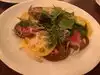 We had three Appetizers all of which were great -- the mussels were the best followed by the escargots Brouillade,and then the beignets, in that order Main dishes generally were very much underwhelming. My friend had the Pastilla de Legumes which was plain and nondescript I had the duck frites which was a grave disappointment --My duck breast which I made two days ago at home was far superior to the nondescript breast they served, and I am a relatively good but by no means excellent cook. The accompanying frites were also dry —McDonald’s frites may be a bit better, though I speak from a two-decade memory here. Dessert of Paris - Brest was delicious The Wine list was just terrible --heavy on light red wines, from Bourgogne! This enamorment of Burgundy, or what the Americans call with misplaced pride Pinot noir was off-putting to say the least. I chose one of the less light red wine bottles since everything else was actually undrinkable, as far as I am concerned They opened the bottle and decanted it inside before bringing it to us on our side-walk table and claimed to have already tasted and approved it! How rude! It was fine which is why I accepted it —but I registered my protest The wine bottle was frigid cold — far too cold to pretend that they only chilled it a bit because of hot weather Service was generally good and friendly If I were to ever go another time, which I doubt, I will limit myself to appetizers and dessert with cocktails --the poverty of the wine list was pitiful I cannot believe the New York bourgeoisie is so tolerant that it thinks the duck and frites at Frenchette are acceptable!
