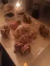 Really cute place with fun music playing. The menu is amazing. Our server was lovely and super efficient. It's def a 5 star restaurant for me, the only problem I have with it is that it is really dark (especially where we're sitting). I ordered 4 very different rolls and they all came on the same plate. It was so dark I couldn't see which was which. Part of the appeal of sushi is its beauty so I kind of felt like I was missing out, but that's just me. But they tasted delicious so it's all good.