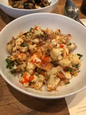 This place is pretty good. We ordered a whole bunch of little things included brussel sprouts, asparagus, some type of fish (asian flavored), duck liver jar, chicken torta and the white and purple cauliflower. I also ordered the lemonade which was REALLY sour. I had to water it down. Anyways, all in all the food was pretty good. But I wouldn't say it's the best I ever had. This place is really small and you have to share tables with strangers. If you don't like that, then you shouldn't come here.