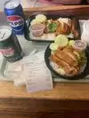 We had the fried chicken and the roast chicken both served with ginger and garlic fried rice and Thai iced coffee. Very good food and drink at a good price.