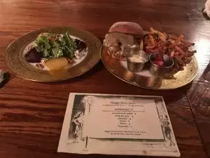 Went because it was the nearest place that sounded interesting with good food so we walked nearly a mile to see. It wasn't worth it. The atmosphere is a matter of personal taste but the food was just plain indifferent. The fish special was over cooked and the chicken was undercooked. The kitchen did semi resurrect the chicken which tasted fine but should have been cooked properly first time around. The salted caramel desert was fine. Poor selection of beer.