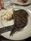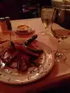Ordered the fried calamari, Gaslight steak (bone in ribeye, rare) with side of mashed potatoes, and lemon sorbet. The calamari were cooked well and the portion was good, but the breading lacked seasoning. The steak was extremely disappointing for the price ($64). It was closer to the medium end of medium rare, chewy, and underseasoned. The steak was very difficult to cut through. The meat quality was poor - a ribeye should have more marbling than what was served. The au jus was flavorful but globby, needed to ask for more to stomach the steak. The mashed potatoes tasted like they were from a box, and there was some strange cream taste almost like ranch dressing, which sounds like it could be good but it was not. The sorbet was decent but uneven texture (icy in some places, smooth in others). Not worth the price here in my opinion.