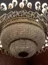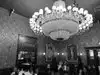 This is a beautiful space with a GIANT chandelier in the main room by the bar , with someone playing the piano and singing ( which makes you want to join in ). The little room behind the bar is romantic and dark , with dark wood and charming people.