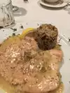 Food was tasty. Did not have any appetizers but enjoyed a nice glass of Pinot Noir and the Veal Marsala was good. The staff was friendly and catered to our needs. Overall, the team enjoyed their dinners of salmon, ravioli and steak.