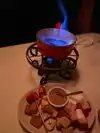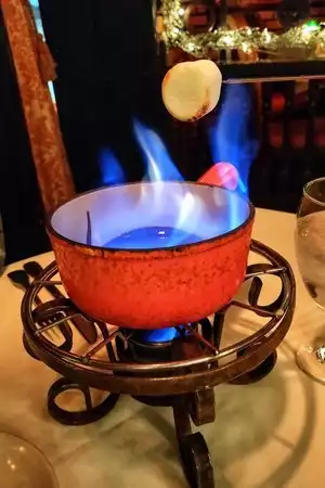Here’s me review of this place and their little fondue dinner. We got a premier thing which is essentially a 3 course number Let’s first start with the positive. The ambiance is great. It’s dark and romantic and the service is good. That’s it. Now for the bad—it’s overpriced. You get 4 small pieces of whatever meat you get for your main. Your starter is some just okay cheese fondue served with stale bread and weirdly salty fruits. The dessert was the best part. It’s hard to mess up chocolate fondue that’s on fire in front of you. But if anything spoils it, would be stale pound cake which what they had. The best part was they have marshmallows that you can toast on the flaming chocolate and put graham cracker crumbs on it. All of this can be yours if you pay them $50 per person but get some drinks which are good and luckily strong because it helps you forget about the meal you’re about to eat.