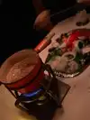 My daughter decided that we needed to go on a date, so she reserved a table at Geja Cafe about a month before we went. We were of course surprised, but delighted to get to go and check the place out. We were given a corner table out of the hubbub of the room, so that was a plus. The place was hopping on a Tuesday, and if you end up on the main floor in the main traffic area, it would be pretty bothersome as people go back and forth around you. Our table was in a step up area and more isolated. If you like a little more quiet, request these tables. Coat check is right at the door, so you don't have to drag your coat to the table. We had never had fondue, so needless to say, we were humored in figuring out how to do fondue. The first course with cheese fondue was excellent and I think my favorite. Breads and fruit to dip. If you drink, pick a nice wine with your meal. Next came the entree. You can share one if you like or pick two different entrees for variety. Hot oil comes out, and the meat, seafood and vegetables are cooked in that oil. Would have like a small timer as the chicken needed about 3 minutes to cook, and it was all guessing. Loved our table, but it was super dark and us old folks can't see well in the dark. My husband used the flashlight on his phone and a timer. Though phone use is discouraged, this was necessary for us. The last was chocolate fondue with flaming fondue that you roasted marshmallows over then dipped fruit and cake bites in to coat with chocolate. I thought the cost was a bit steep, but I had never had fondue. Would be nice if they labeled the dipping sauces because I forgot almost immediately what they were after the waiter told us. Wait staff was excellent and professional. We enjoyed our visit, but I think my daughter would have enjoyed it more. Would recommend for a fun night out or the romantic disclaimer.