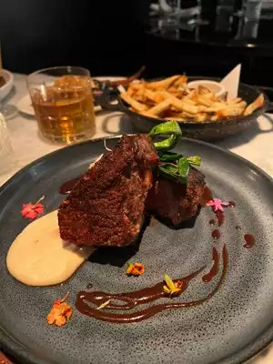 So we came for a late dinner on a Wednesday- I've heard even when you have a reso, you have to wait - obviously not applicable to our dining time. Look, service, meh. I found it hard to order a second drink, my first cocktail had easy modifications that were definitely ignored, our appetizers came long before our starting cocktails, and we were blindly recommended the most expensive wine by the glass, even when we described liking the complete opposite. So look, don't go for top service. I normally wouldn't give a five star rating strictly on food, but I feel compelled here. I regularly eat at top restaurants all over the world, and had low expectations for this new trendy place. But honestly - every dish...every one, I would go back for...the lobster dumplings, striploin (I have VERY high standards for steak), the waygu crispy rice...and wow - that wedge salad (I know, please just trust). I will definitely be back, and can't wait to try everything. Just excellent food.