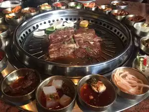 The restaurant offers a unique assortment of Korean appetizers and barbecue the meat on your table. The food is tasty and unique and offers a nice experience. I guess that is why they prices are high. The meal could take some time since you start with the large number of small appetizer dishes then they bring the raw meat to be cooked in front of you. Some meat cuts could include unchewable fat ...they do not trim it carefully. Some meat comes wrapped around the bone ribs which is basically a waste of cooking...since no one will eat bones or the tough meat around the bones. This makes some parts of the meat non tender. It’s a nice experience but l wish they could do a better job trimming the fat/undesirable parts of the meat specially for the high prices they charge.