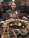 Before our entree made its appearance, the wait staff loaded the entire table with 25 delicious side dishes. Freshly steamed egg custard, beef stew, marinaded blood clams, clear white seaweed, stewed beef and on and on and on. The staff did all the BBQ for us. We nibbled on all the sides, ate our BBQd meats and drank a hot bowl of Korean miso tofu soup. Everything was fresh, the sauces were spot on, and the space is modern yet cozy. Worth the money.