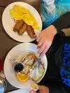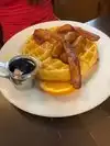 The waffles looked really good. Omelette was overcooked and dried out. Home fries were lacking seasoning and also dry. Service was super slow. Waited about 20 minutes to get the check. Overpriced breakfast food.
