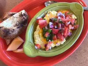 Met friends here on a Sunday morning for breakfast. It has both a great atmosphere and excellent food, as well as outstanding service from the host and wait staff. Plan on a wait for a table. Yes, it's that popular! Portions were ample but not overwhelming. The 'scramble' I ordered was nicely prepared and presented, as well as offered with a nice choice of accompaniments.
