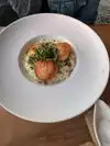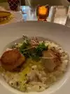 The ambiance was wonderful as was our waiter. The orzo meatballs were delicious. The bacon wrapped dates were a bit sweet but otherwise tasty. Per our friend the ravioli was outstanding. My husband ordered the signature lemon pasta and found it to be too rich and heavy. My scallops were delicious and the seat was beautiful. The risotto was a bit to rich as well. Overall we enjoyed our evening but would order different food next time.