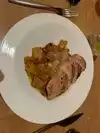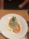 The presentation of the dish is beautiful, everything tasted delicious at first, but after a few minutes the sauce thickens and eating spaghetti is just unpleasant. The level of this restaurant from the chef Giada must be exceptional. Could separately serve the sauce to the dish and the plates should be at least warm. The price of the dish is about $46 with taxes and does not match its quality.