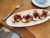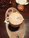 grilled mini yellow peppers stuffed with goat cheese appetizer, peppers were barely grilled and more like erudite (raw), bartender did not know how to make drink so had to inform of 2 ingredients plus 1 garnish