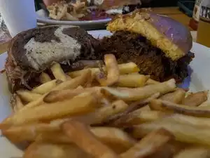We had a delicious dinner. My husband and I shared a Reuben and the pulled pork sandwich. Because of a review that said the fries weren’t cooked enough we ordered them extra crispy and they were great.