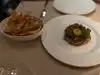 Had a solo dinner at the bar on a weeknight. The restaurant was very quiet. Don't be fooled--the hours online say "4pm-late," but the kitchen closes at 8:45pm. The menu had a nice mix of small plates and entrees. The restaurant leans French, though there are also some pastas. There was a nice array of cocktails on offer. I had a salad and some pasta. Both were tasty, though not remarkable. Prices were a little high for the quality/originality of the food. Cocktails were made well. Nice atmosphere; French/European feeling. Pleasant and welcoming service.