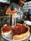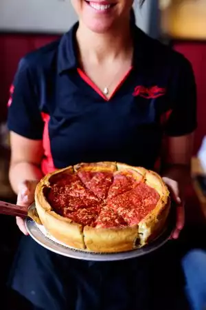 Slow/non existent service! First visit to this restaurant to try the “amazing” deep dish pizza and sadly it was disappointing!! Seated quickly and ordered the sampler which wasn’t too bad and we got 2 individual pizzas to try with toppings. The pizzas were ok, they did fall apart unlike the larger sizes. Our server was non existent, just took the order and disappeared for ages each time. I had to flag down someone to get a refill on a soda! It seemed if there was a larger table she was more interested in that to just us 2! Very disappointing experience I’ve had on my trip so far! Other servers seemed to be doing a great job we sadly got one who wasn’t bothered until the check was presented!