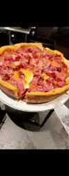 Absolutely delicious! I'm used to the big chain version of "deep dish", which just means 1-2 inches of bread with the standard toppings. This is nothing like that. It was a thin crust on the bottom, raised crispy crust all around like an actual pie, then filed with deliciousness! Our party of 4 got a meat and more meat, and a super veggie, both medium deep dish. With 3 men and a hungry mom, we still had plenty of leftovers! Hope they open one soon in So Cal!