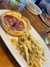Ordered the appetizer sampler while waiting for our deep dish - most of it was good but didn’t care for the garlic bread. Ordered the small deep dish for 2 people and could barely eat half because so filling but Delicious!! We also ordered peach Bellinis which were excellent!