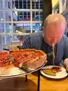 Delicious deep deep deep dish pizza. The cheese bread appie was also very good. The service was top-notch. Bruce made us feel like good friends who came over for dinner. Location is very convenient in the middle of the strip. Be sure to leave enough time to enjoy, it takes 45 minutes for the deep dish pies. We loved watching them twirl the dough above their heads.