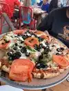 ate there second week of May 2022. Service was good. they have both an indoor and outdoor restuarant. the outdoor obviously is not air conditioned. Ate there pizza and cheesy bread? Bread was good. Expensive but good. We shared a small pizza for around $25 we would go again but pick diff pizza. ours was loaded with green peppers and onions. Way over board. Some are good for flavor but they substitute the meat for this.
