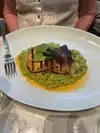 This was a pass the food around dinner. Everyone's meal was excellent. I had the pork chop with vinegar sauce; my daughter had the salmon & my wife had a seafood medley. All great! The veggies were excellent and the desserts... the buttermilk ice cream, my wife felt that it was the best she's ever tasted (The UCONN Dairy Bar is better,) and the coconut corn bread was outstanding.