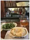We sat outside because we have a dog. The food was so great. Try the Chicken pot pie and french onion soup. They were fabulous. the pot pie had a great light crust. We also tried Mac and cheese and it was one of the best mac and cheese I've ever had. the prices are very reasonable three of us $60.