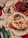 We had an incredible dinner at Golden Steer. Started with oysters, bone marrow, king crab legs, and lobster – everything was super fresh and full of flavor. For the main course, we had the bone-in ribeye, cooked perfectly and absolutely delicious. On the side, we shared creamed spinach, mac & cheese, grilled asparagus, and whipped mashed potatoes – all of it was outstanding. The service was warm and professional, and the atmosphere is classic, historic, and really special. This isn’t just a meal, it’s an experience. Hands down the best steakhouse in Vegas – maybe even in the U.S.