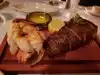 We tried booking this property back in 2024. In January 2025 we got lucky and we got a reservation for June 2025. It was a coincidence that it fell on the exact day of my brother’s birthday. We arrived early thinking we’re going to have parking issues, but that wasn’t the case. As we walked through the 1st door, we looked inside upon opening the 2nd door. We could feel the energy filled with so much history, intimidating but invigorating. We wanted to experience the whole dining vibe instead of just sitting at the bar. We got seated promptly and dining area was tight but they made it work. The Caesar’s salad was great & the server told us the history while making it from scratch table side. First time trying the Tomahawk, better leave the cooking to the pros. The meat tasted more leaner than the ribeye. The middle was pink with a good crisp on the outside. Ribeye was marvelous, marbled all over. I ate what I could off the bone too. Crab legs & lobster tail was cooked to perfection!! Shrimp appetizer was crazy delicious, best way to eat is to drench the whole slice of bread in the saucer. The halved lemons have a cover to prevent seeds from going into your food. The Brussel sprouts were refreshing, every bite exploded in my mouth. The secret might be in how they grilled it. Cherries Jubilee was fun & phenomenal. I literally drank it from the serving dish. The cheesecake slice was awesome, it blew away the “Factory” by a mile. Shout out to all the servers, very experienced and amazing!! They literally took the time to make room on our table for all the food we ordered and made sure we were comfortable. Thank you Golden Steer for taking care of us!!