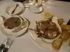 the food was very good as was the service the restaurant has a really neat story behind it however it is the typically over priced Las Vegas restaurant/ Steak house. the steaks were no better then a Texas Roadhouse as were the sides and the staff were friendly and fast but like i said a good one time experience for you but that is about it-you kkow to say you've ate there. wofe and i ate for 298 and some change, we both had water, i had a small prime rib she had a small filet and we both had a side salad. we had a twice baked potato and an order of mushrooms and the wife had a slice of carrot cake....so was to us a little over priced.