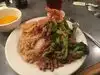 Good Service. Decent size servings. Some with us had seafood, beautiful and tasty at good price. Excellent hot tea. Banana dessert beautiful and yummy