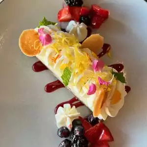 The food is fantastic. My husband loved their chowder. Sarah was our server one evening and she’s terrific, very personable. We had breakfast here as well Benjamin was our server and he was excellent as well. The only drawback is that there was a considerable wait time for the meals to arrive. Understandable at dinner but not so much at breakfast.