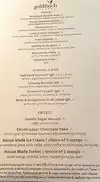 The Goldfinch Tavern is a lovely place to have a drink or a meal. The decor is very modern and quite attractive, making this a pleasant place to sit and chat. We were very impressed with the attentive waitstaff who seemed always available to answer a question or refill a drink. The food and drink menus were first-rate, with a wide selection that should satisfy any palate. An excellent selection of wines and beers, along with some interesting mixed drinks. The dinner menu offered many fine choices; we enjoyed the crab salad, prawn pasta and halibut. A nearby table ordered pork chops and strip steak, both of which also looked delicious. Just realize that all this comes at a fairly steep price, particularly the drinks. The pasta was $30 and the halibut $40.