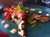 we had the beet salad which was good, but the other entrees were actually bland. drinks were excellent and service was jus so-so. we were execting more/better fr a restaurant in the 4 season's