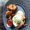 We had heard good reviews from friends, so decided to try it. We were very pleased. The seafood appetizers were excellent. Fresh and flavorful. I ordered the traditional Eggs Benedict, which was really only a half, but was perfect with all of the appetizers. My husband ordered the small steak, he said it was very flavorful but also stringy and tough. My daughter ordered the scrambled eggs, she said they were very good. Overall we were very pleased and will definitely go back