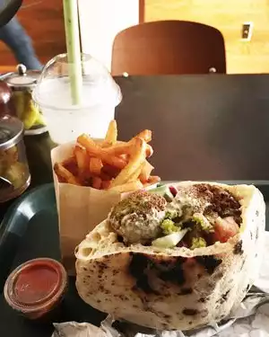 We are looking for fast food, vegan food, which is easier to find these days, but not quite as fresh and filling as this restaurant's. The traditional falafel eaters in our group were delighted. I was thrilled and delighted with my very interesting salad. While space is limited, customers were patient and cooperative. Turnover at the tables is quick, so don't leave just because the place looks crowded. The staff is helpful and efficient.