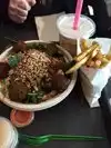 It was good food for Friday lunch. Me and my friend went there for first time, we wanted to try the flafel. First it was big line. I understand, it's because the location and it's small place. What we didn't like was the Flafel and the fries. they ware salty. NO NO not a little bit salty. it was like they get salt for free. The shake was great.