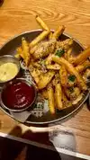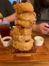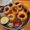 The truffle fries were fantastic. The onion rings were decent. I had to pull a part of the shell out to make a few of them edible. The burger’s were cooked to order or just a bit under. And we’re fantastic. The seasoning was yummy which made the under cooked eatable. The craft cocktail margarita was… undesirable but you have to try to local affair. So $83+ tip not sure I would recommend or return. But hey when in Rome. Not sure I would go back for the price. But the food was decent.