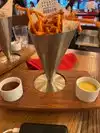 Gordon, Gordon what the heck are you doing here? How bad can a burger be? We walked by, dropped in, told no tables. Booked online and in we went. Service was very mediocre. Ordered our burgers, well done, no pink. We did not expect cardboard, no flavour patties, masked with a chunk of tomato and lettuce. As for the sweet potato fries powder? Security girl with a gun on show at the door was very different as we had not witnessed throughout our stay, though the Chicago Police appeared happy dining here