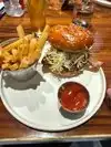 Awful burger and the fries were the worst ever!! Nice vibe to the restaurant and nice decor. The waiter was nice . Too bad the food sucked.