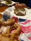 Food timed poorly. Onion rings room temp. Flavors decent. The dining area seems pretty saturated with people and thus the kitchen struggles. I think you could find better at this price point.