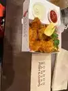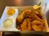 This was a dissapointment, a restaurant trying to be too many things. Not enough space to sit for it to be a proper restaurant, but way too slow for somewhere emulating a chippy or fast food. Husband said chicken wedges were good and batter on shrimp was good. Chips were absolutely doused in salt and we watched several people throw most away as did we after trying to remove at least some of the salt.