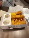 The fish was tasteless. The chips the worst Iâve had in this whole city Iâm sure they were reheated. Sort of hard but not crispy. The chicken had a weird smell. Appalling decor/atmosphere. If you put your name to something youâd better at least check in on it. I can imagine GR visiting it as one of his Hellâs Kitchen programmes and shouting at everyone who couldnât care less. I can imagine him going round the corner to a shop to buy tartare sauce and then shouting at them hot not even being that good. Left after eating about a quarter. Only had that much because Iâd paid and didnât want to believe it was SO bad. Just do not bother.