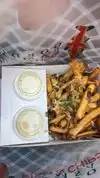 we were looking for fish and chips and online review said that this place was good so decided to check it out. overall, it was decent but not great and there are better places out there itâs a more casual place where you place the order and pick it up and the other end of the counter. there are only a couple of options including fish and shrimp as well as fries with toppings. we got the fish and chips as well as fries with toppings â both came with sauces so we choose different sauces. the fish was decent but tasted a little frozen and the taste was minimal but was better with the sauces. the fries were topped cheese and truffles and were decent but a bit salty. again, overall decent food but tasted more like fast food and it was very overpriced - almost $20 for the chips and based on that price that flavor should be better