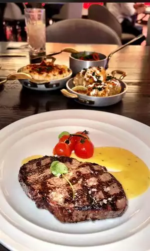 Amazing food with the best mac & cheese and potato puree sides I've ever tasted! Location is very beautiful with lots of fairy lights, plants and high rise buildings outside. The staff were attentive, friendly and upbeat. Stylish modern restaurant with great cocktails, I ordered the 'Message from Gordon', The steak was cooked to perfection and we had the best time. Thank you for an amazing birthday experience ⭐️⭐️⭐️⭐️⭐️