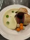 We had the beef wellington, different starters, but the fact remains that everything is cold. The cooking of the scallops was only on one side however the lobster risotto was good but cold The plate of cold beef wellington, I don't know how long it was ready but we ate it all cold. Sticky toffee pudding dessert; simple it is 100 times better in England. I had a coffee and it was very strong, I had to add 4 sugars and to finish, the bill was steep. You pay for the name more than for the quality. The service is 5 out of 5 and the cooking of the food 5 out of 5. tip is included in the bill and it is 20%. I will not return.