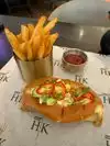 Delicious salmon with Crispy skin and chicken breaded burger with crispy bacon Service was very nice, too. Fries delicious. Who can ask for more?