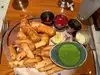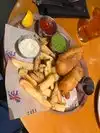 Fabulous atmosphere inside busy hotel , not sure the menu was typical British pub. Had the fish and chips and was extremely disappointed in the bland tasteless batter , definitely uk batter is sooo much better . The fish itself was amazing, which made up for the batter.