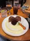 The actual table server was lovely but clearly overloaded with the number of tables and people to work. Our drinks arrived after we finished our meals, and the bill (when we could actually get it) was at least four times the amount of food we’d actually ordered. We went to the front desk to try and correct (as the server was not in sight and hectic when in sight trying to keep up), but received a very frosty reception for what was ultimately the restaurants mistake. Eventually this was resolved but condescendingly and took way too long.